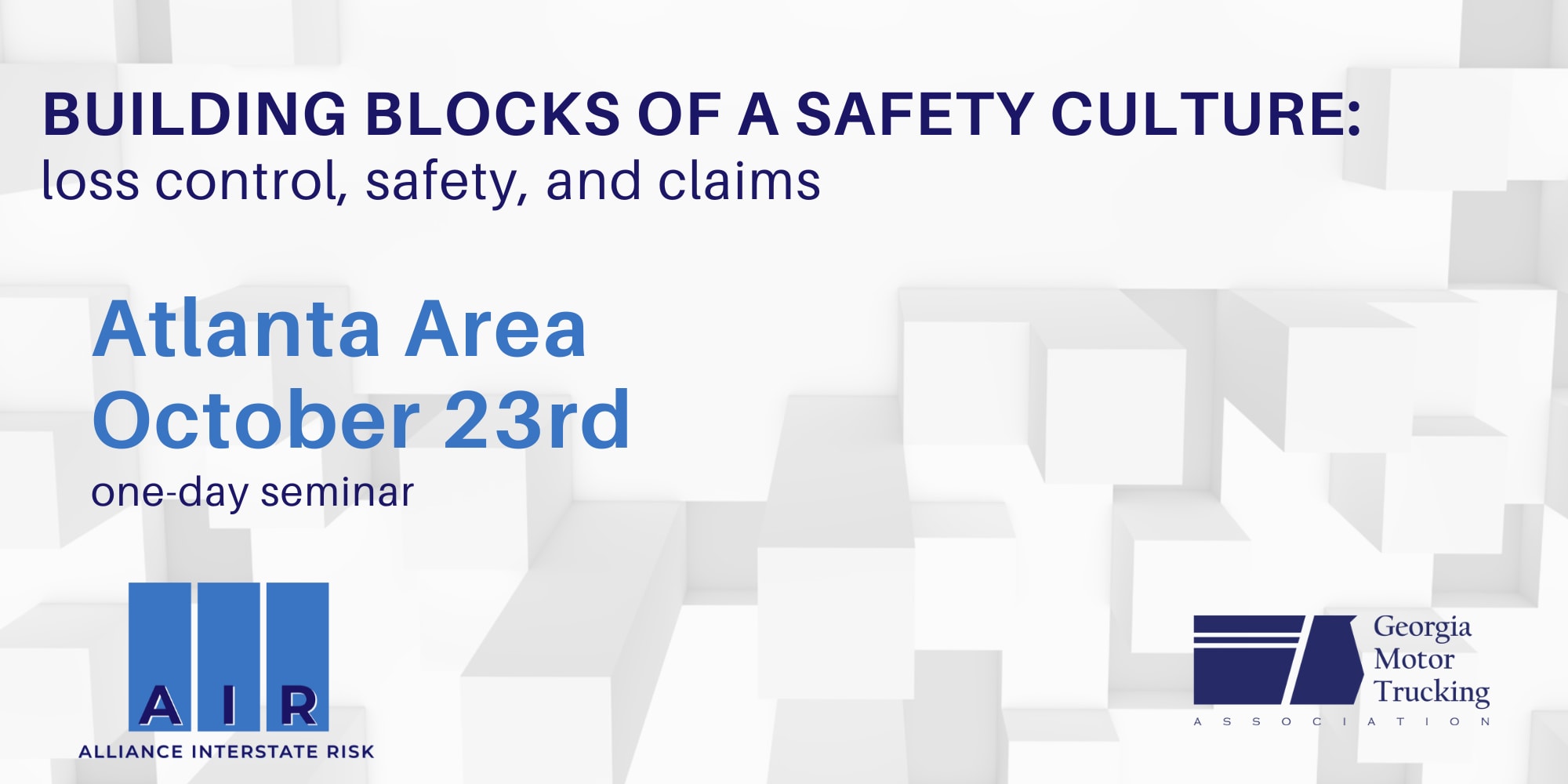 Learn how to build your company’s safety culture by taking a proactive approach to Loss Control, Safety, and Claim Management in a one-day interactive seminar, presented by Alliance Interstate Risk and the GMTA.